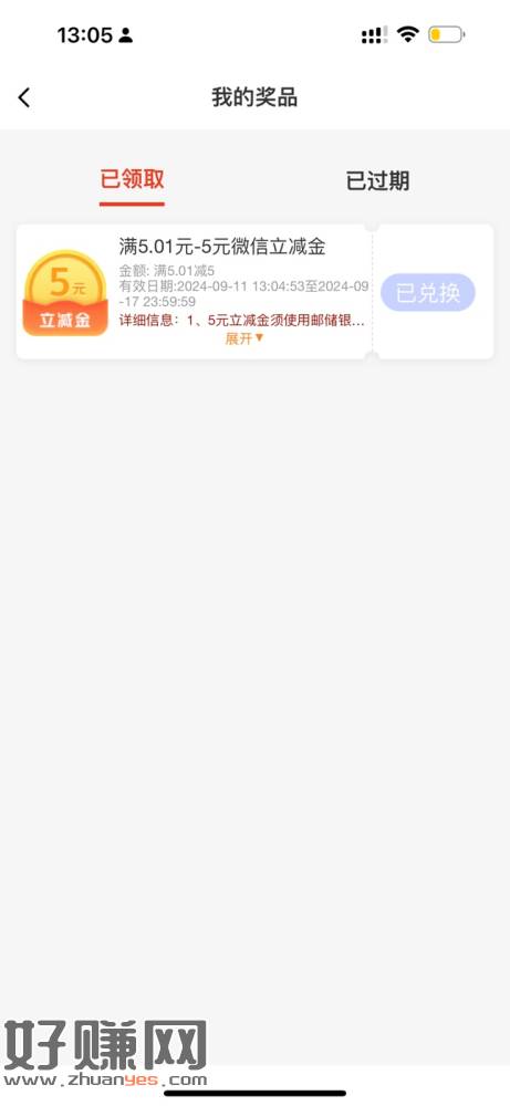 [ 邮储银行 ]您有一份5元微信立减金待领取,点击