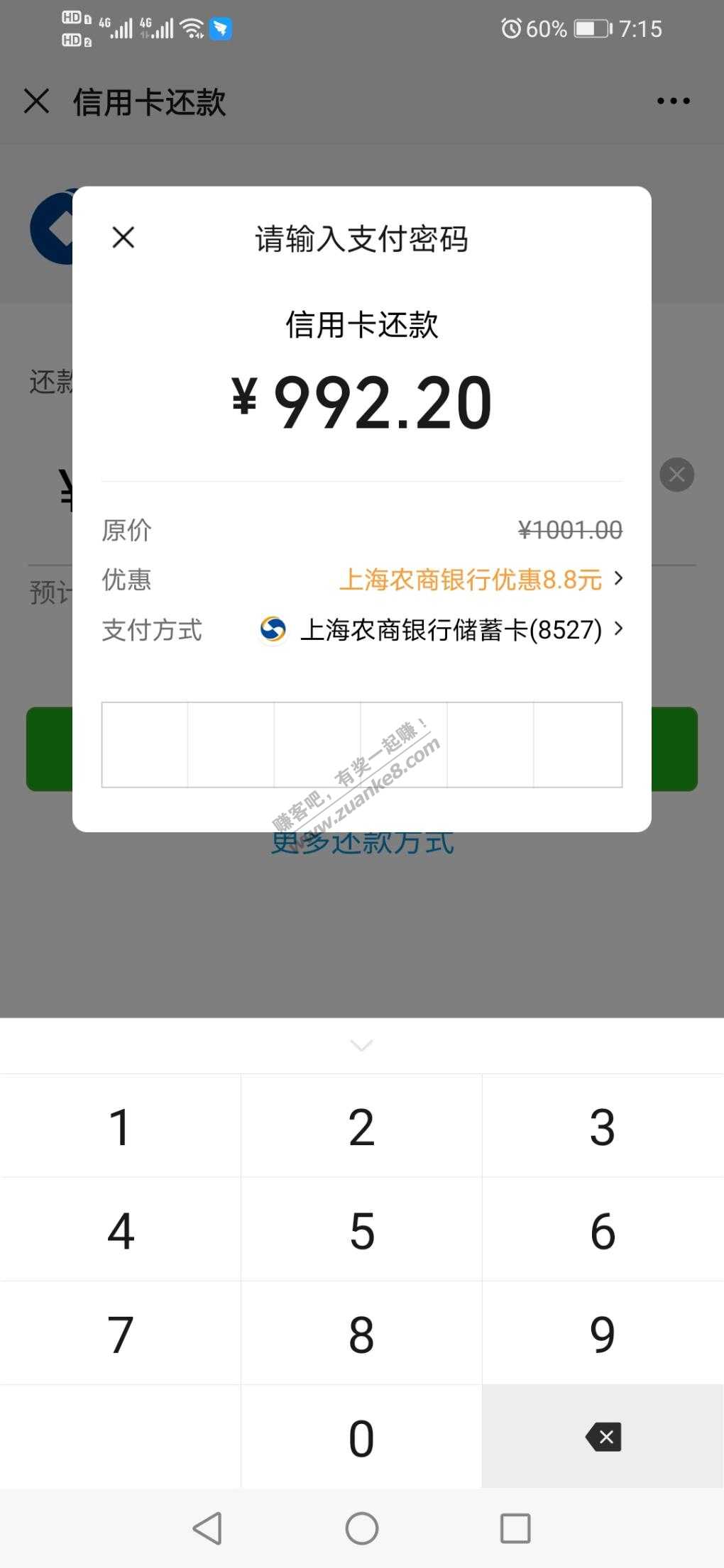上海农商行储蓄卡v还款1000—10,简单有效,加果