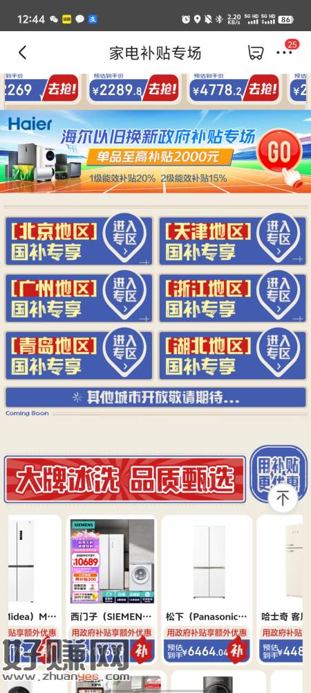 今日新增了天津的补贴,目前有线上全国补贴的地方有北京,广州,