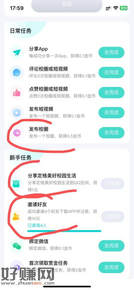 下载U校圈App,4头10毛,叶子有码我申请过了,我的,任务中心下拉新手任务,分享1,4头10,发布校圈自动弹抽奖最低0.5,其他任务懒得做,做完这几个就提现,不秒,我大号提现次日到,两个小号2天到的,还有8个小号今天刚提,注意拉小号时拉一个看一个成功没有,有时同设备拉了不算,就用云手机去拉,拉一次卸载然后跳转继续反复。