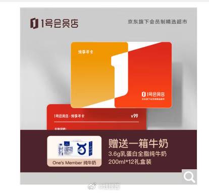 12,1号会员店纯享年卡·实体卡 送一箱3.6g蛋白全脂牛奶(200ml*12)应该需要运费6