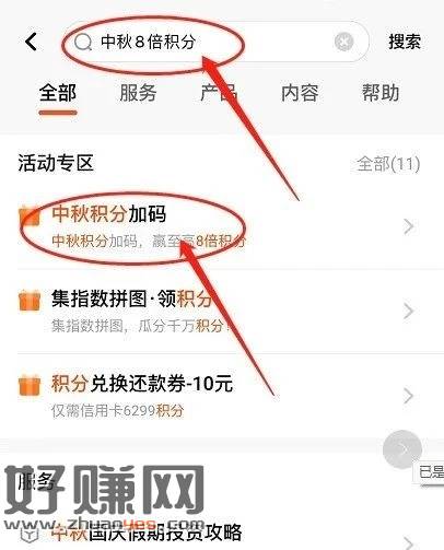 第一步:平安口袋银行APP--搜“中秋8倍积分”,进入活动页面