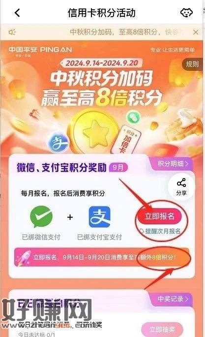 平安近期新活动:中秋积分加码,赢至高8倍积分。