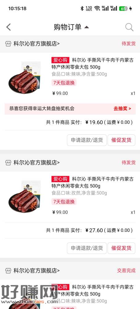 善融首页横幅有红包雨 概率中99-50 可以买点日用品 他家牛肉干还是不错的