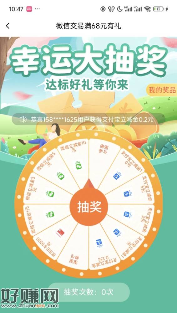 邮储微信交易68抽奖去抽,可轮到俺首发了