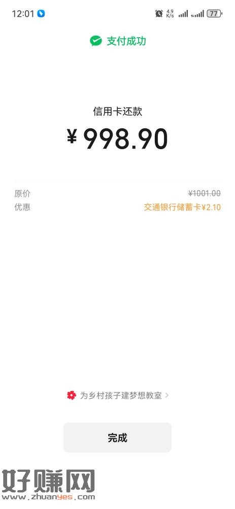 微信信用卡还款用交行满1000随机减,至少减2