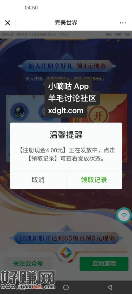 VX游戏有推完美世界的可以做,刚领的4毛,没有链接