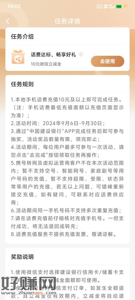 建行会员中心盲盒任务交10话费给10立减金