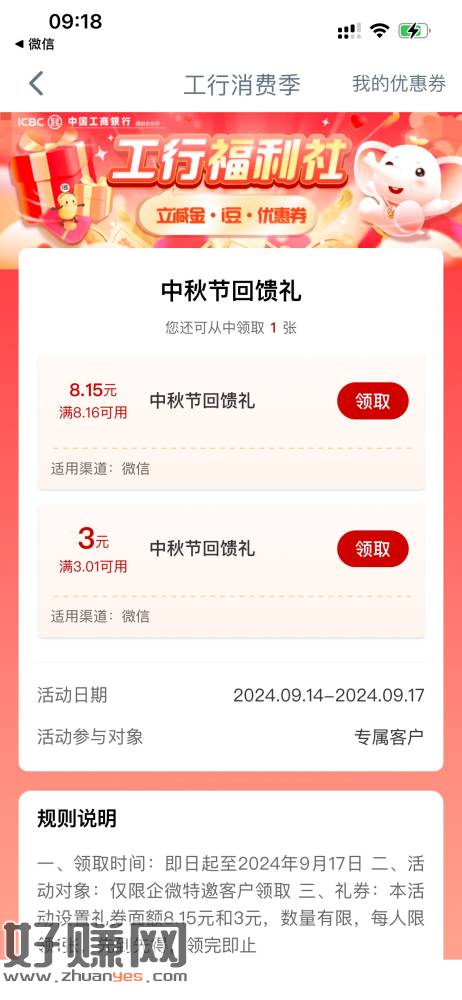工行特邀8.15|3元立减二选一