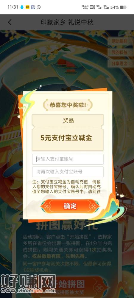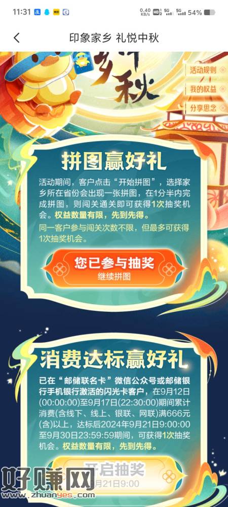 邮储活动中心,闪光卡中秋活动,拼图抽奖,刚中5