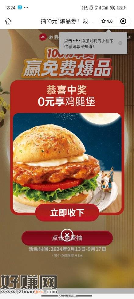 必胜客抽奖,中了需要随单