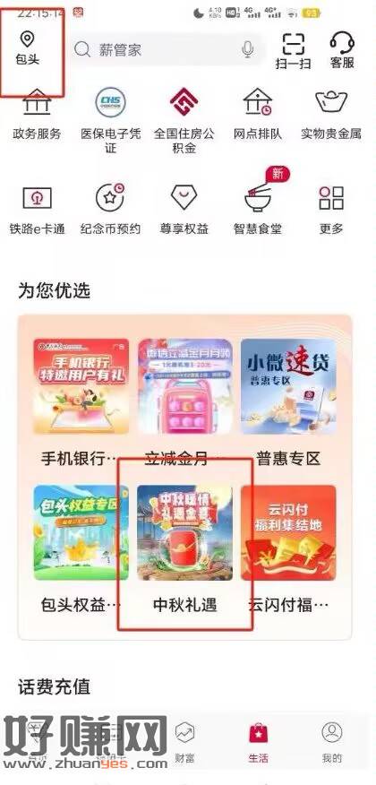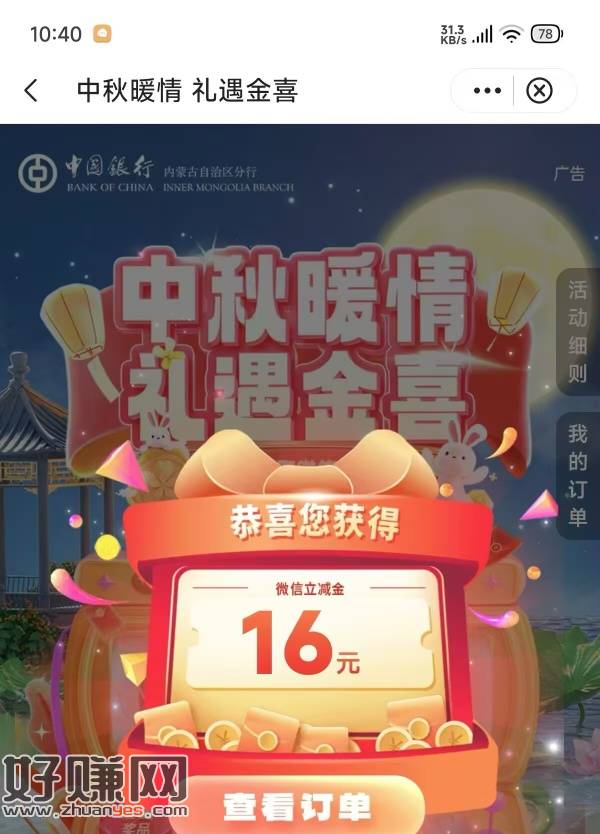 中行app.手动地址改为包头 点中秋礼遇 付一亓 得6块