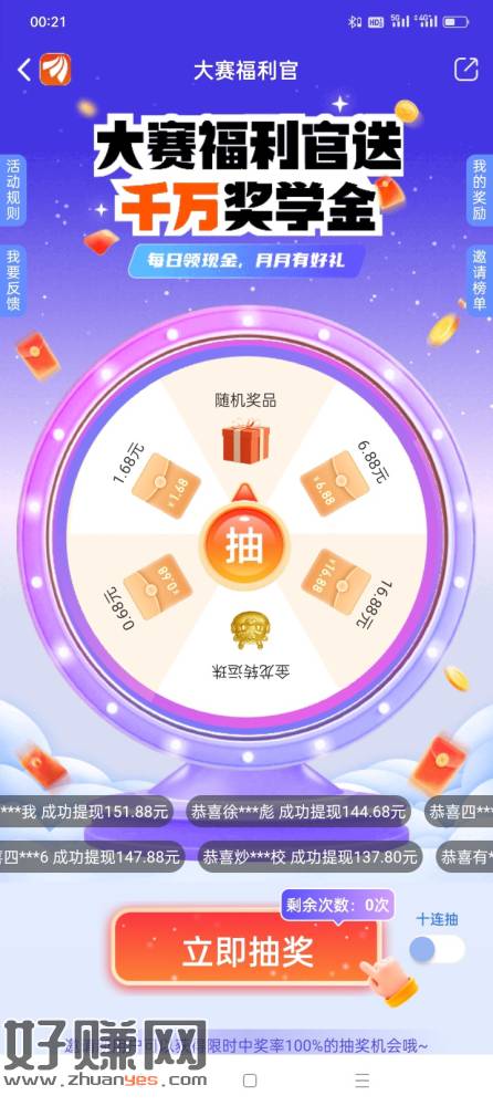 东方财富搜 大赛福利官 往下拉 做日常任务 我抽到两个0.