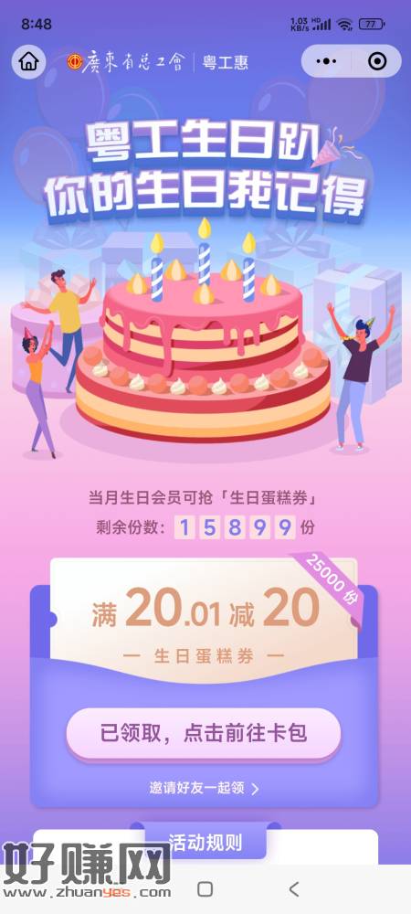 粤工惠的生日券可以领了,没领的抓紧时间去,
