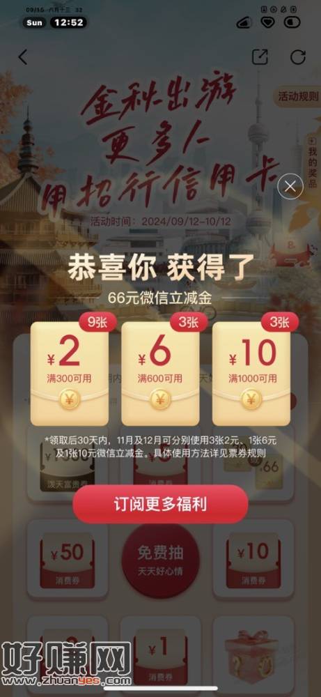 掌上生活抽消费金,刚中66券包