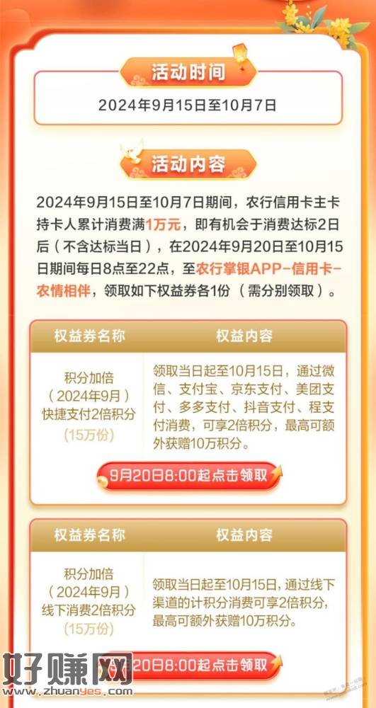 农行xing/用卡消费得三倍积分活动