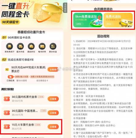 【同程旅行领35减15元火车票券】同程旅行APP搜索“抢十一”->直接领90天金卡会员,新客有火车票35-15亓券 和 8亓打车券->可提前免费光速抢国庆期间火车票