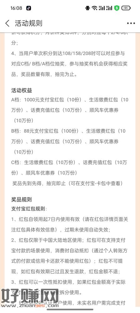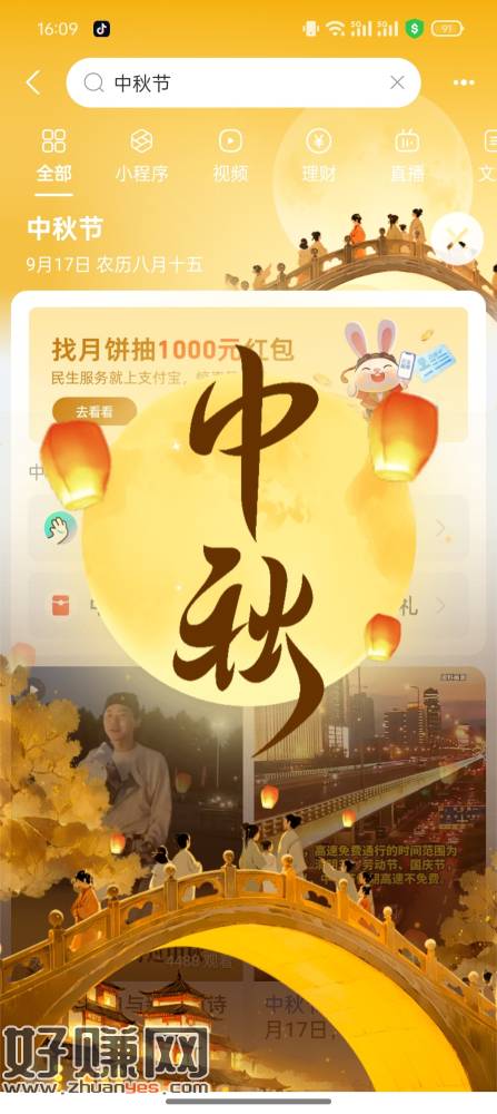 zfb搜中秋节,具体奖励看图吧,我是可菜c档,具体就是点图里
