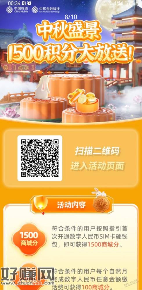 首先自己的移动sim卡支持nfc的,然后在数字人民币开通工商银行硬钱包,然后到账1500和包积分