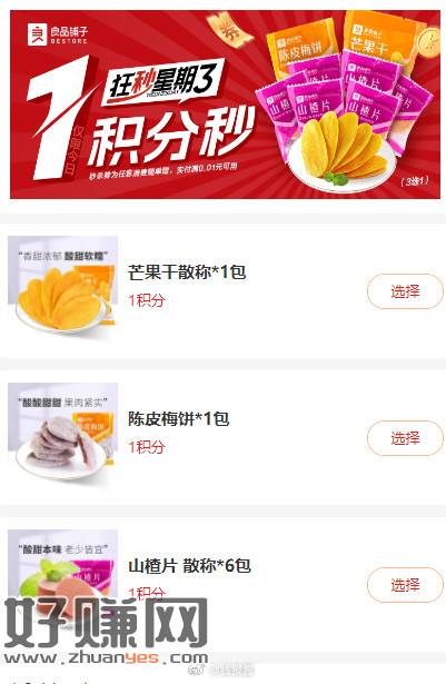 10点,良品铺子1积分兑换,需要线下自提