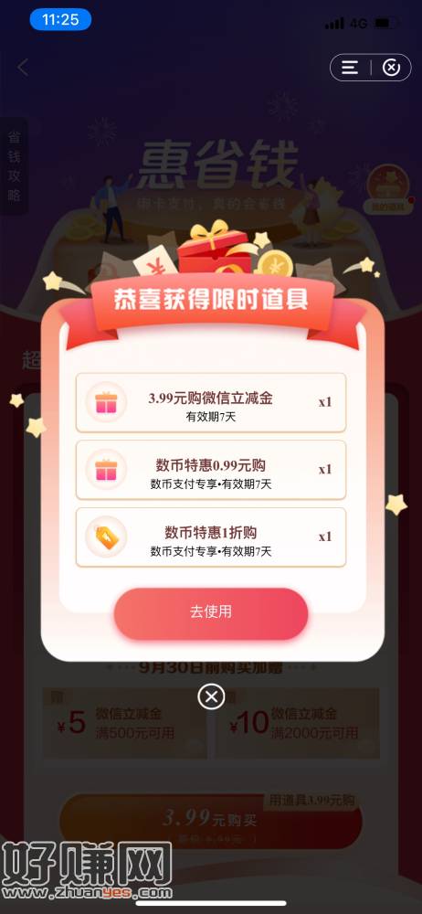 建行没有买省钱卡的去试试,建行APP首页惠省钱自动弹,0.99购
