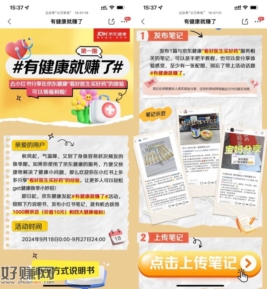 【京东健康发小红书领1000京豆】京东打开活动->根据提示发小红书笔记并上传,通过后可得1000京豆