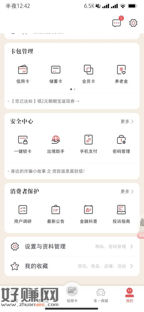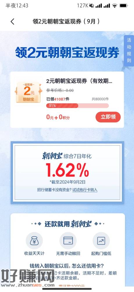 掌上生活朝朝宝返现券2元 看看有没有 还5