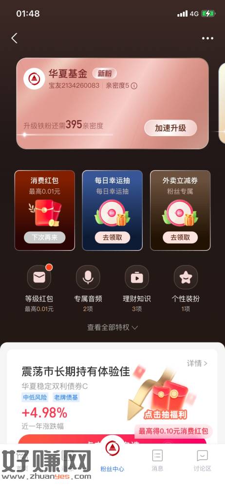 支付宝搜华夏基金,粉丝中心0.6,领了直接深圳通充0.6