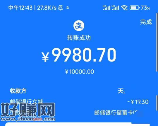 Zfb转账,10000-10多,广州邮储卡,其他地区自测,可