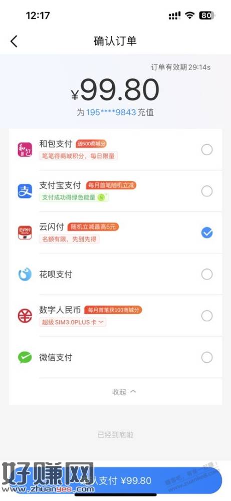 然后:付款的时候第一步 先选择云闪付 然后在选择