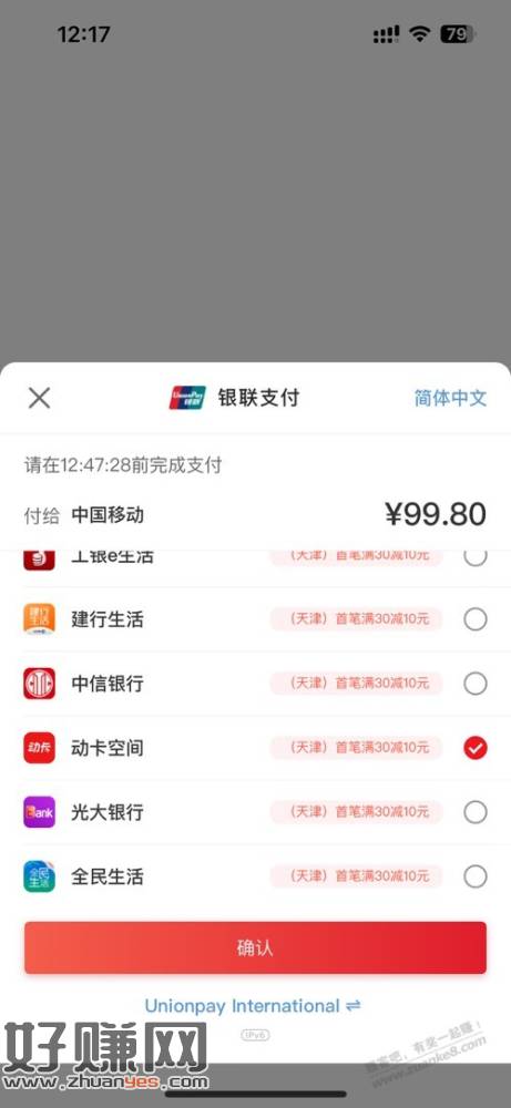 “中国移动app充话费30跳转云闪付动卡空间减10”