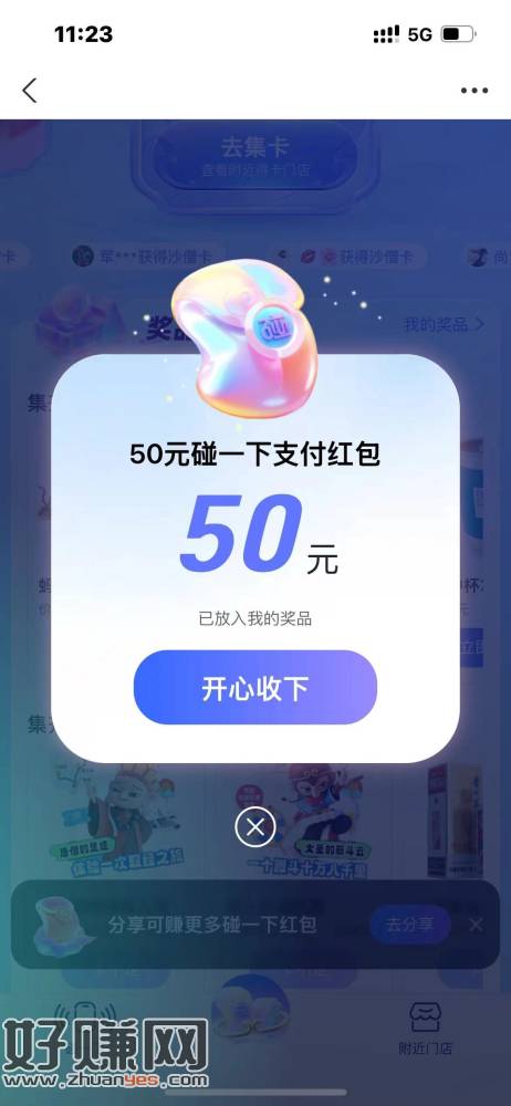 支付宝碰一下支付集卡活动,兑换黄金50元支付红包