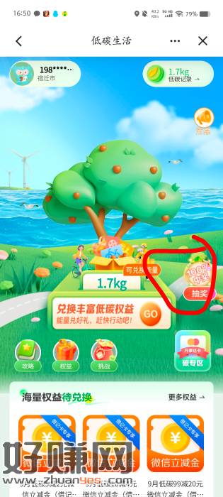 建行搜低碳生活,有个抽奖,每月三次,首次免费,后续200能量一次,刚中1.08