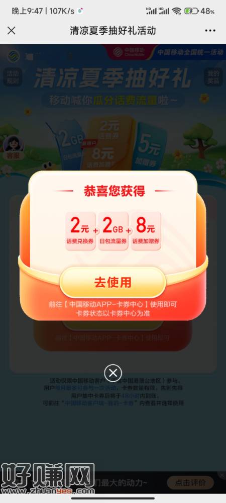 移动用户,8+2话费卷,还有2G流量,2话费秒到