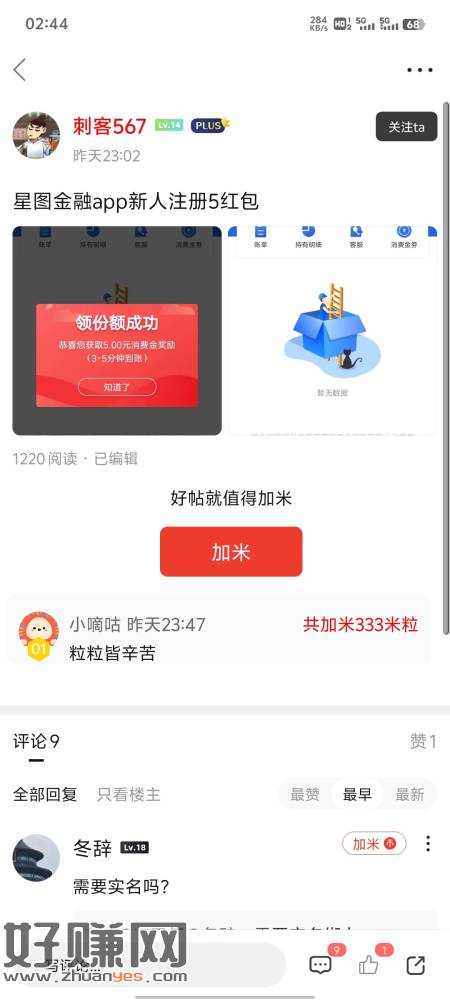 1.这个老哥发的,能领5块现金提现。