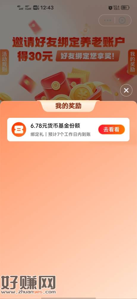天天基金首绑养老账户抽了6.78,我了个骚刚