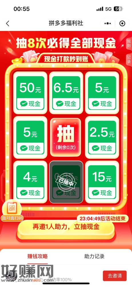 拼多多福利社这个,自己点邀请发给小号,打开一下,大号每天都有1次抽奖机会,异常也没事,每天可以弄个低保