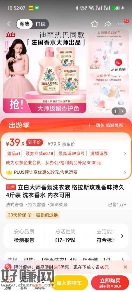 立白香氛大师降价了 刚需洗衣液的可上了 39.9送家政 鱼35一张卖掉
