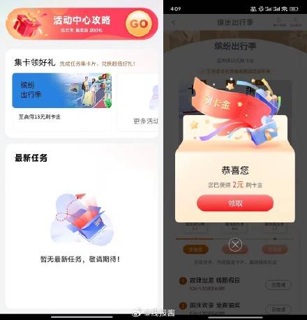 工银e生活,任务中心,集卡领好礼,试试缤纷出行季任务