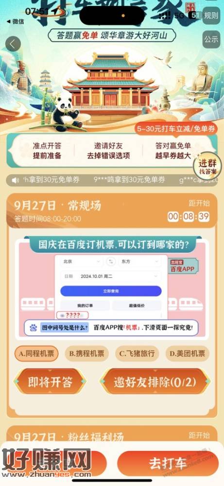 A,8点开始,越早越大金额!百度地图首页-打车进去,打车预言家答题!或者搜索打车预言家!