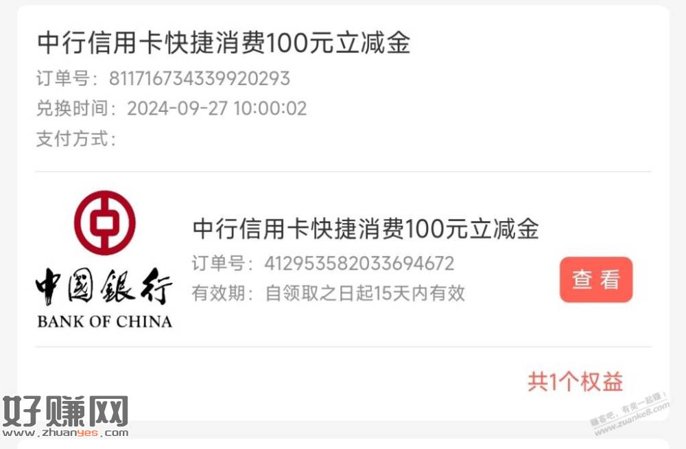 010中国银行xing/用卡立减金,100元,taoxian90