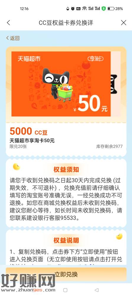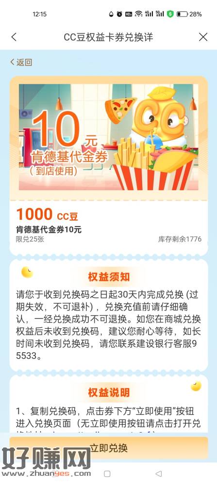 建行cc豆,上架50猫卡 50话费,10肯德基