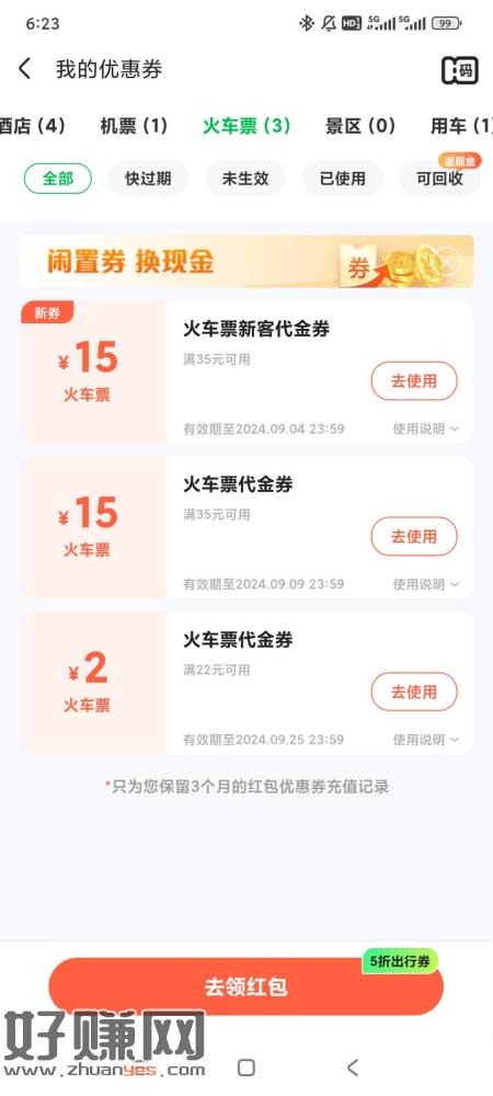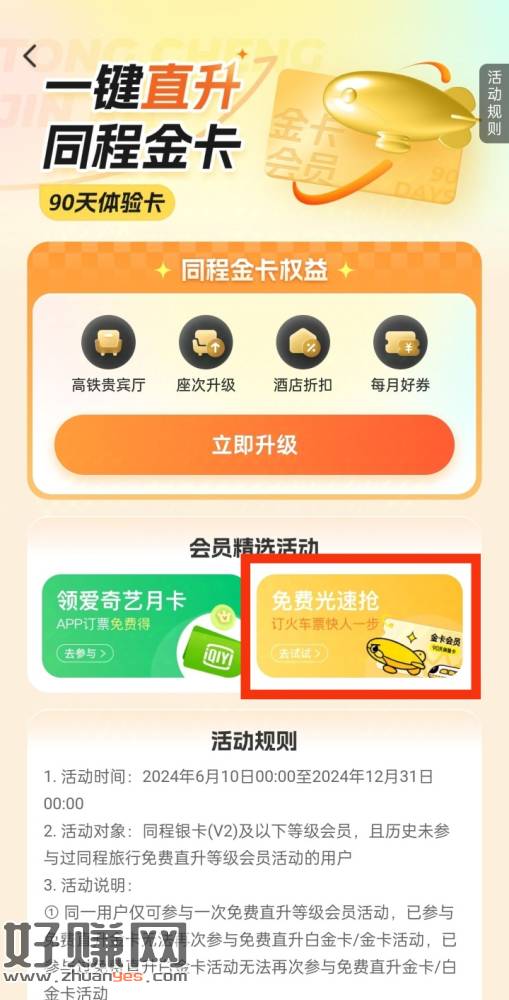 同程旅行APP搜索“放票”->领90天金卡会员,其中包含新客火车票30-10亓券+订火车票享前5KM免费接送站