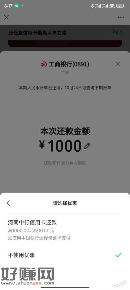 河南中行微信还xing/用卡1000-10 速度