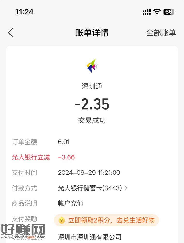 深圳通支付宝充值光大减了3.66,石家庄的卡