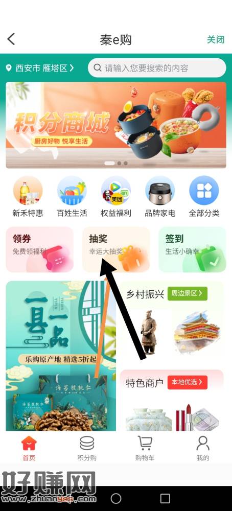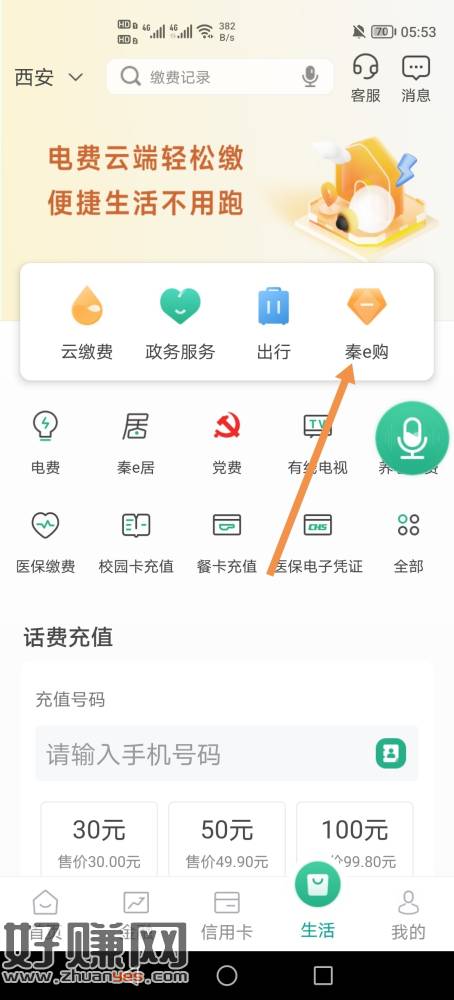 陕西信合app,7点开始抽奖。有卡的才能玩,入口,秦e购,抽奖