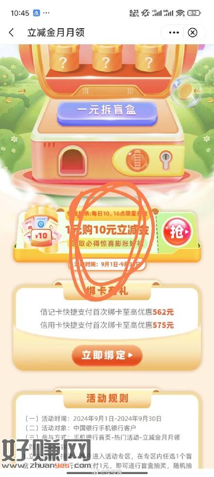 中行1买10这个月还没毕业的,现在还有名额,
