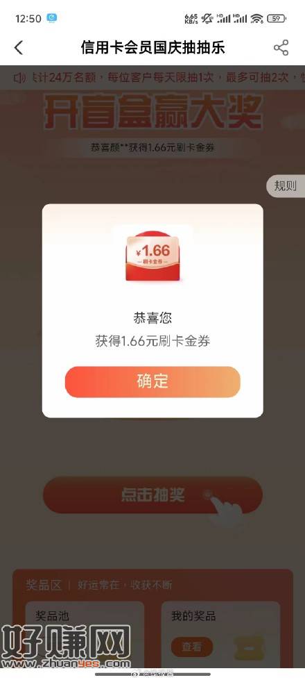 农业银行APP-首页-信用卡-会员特权-国庆抽抽乐,每天一抽