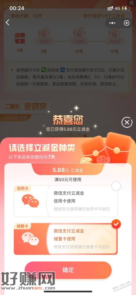 建行金额消费达标能抽
