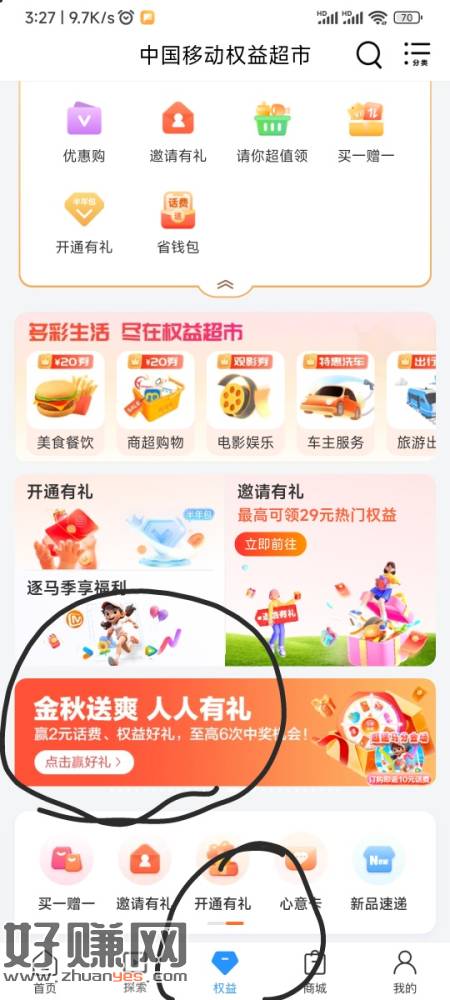 中国移动app抽话费,权益-下拉看图,抽一次,浏览任务再抽3